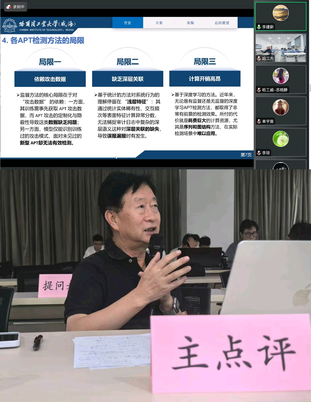 2025年10月29日14:00-17:30,哈工大方班第62期学术研讨厅在哈尔滨工业大学深圳校区成功举办,中国工程院方滨兴院士,特邀专家贾焰教授和李晓明教授全程参与了课堂的教学,并对同学们的报告逐一进行了指导点评。同时参与的还有来自哈尔滨工业大学一校三区的部分老师和78名学生。本次学术研讨厅分为两个班进行,分别由哈尔滨工业大学一校三区共计8名学生参与汇报。在本次学术汇报中,方院士表示该研究融合了不同安全机制的创新...
