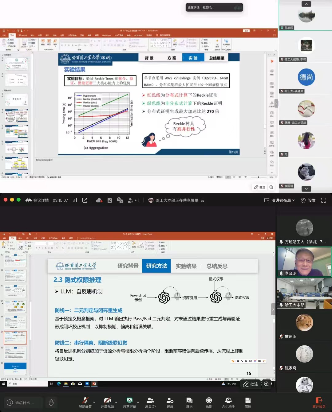 2026年4月8日18:00-21:30,哈工大方班第74期学术研讨厅在哈尔滨工业大学深圳校区成功举办,中国工程院孔志印院士、特邀专家李晓明教授全程参与了课堂的教学,并对同学们的报告逐一进行了指导点评。同时参与的还有来自哈尔滨工业大学一校三区的部分老师和学生。本次学术研讨厅分为两个班进行,分别由哈尔滨工业大学(校本部和深圳校区)共计8名学生参与汇报。在本次学术汇报中,孔志印院士谈到,该研究提出的Reckle树相比Merkl...