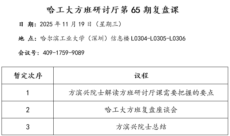 哈工大方班第65期学术研讨厅(复盘课)(11月19日周三下午)